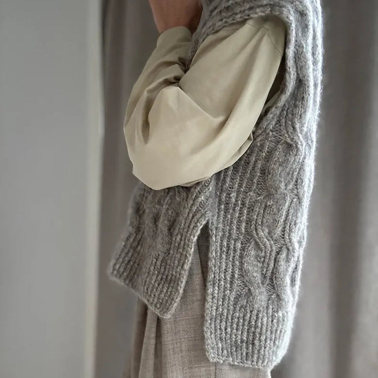 Mit einem GARNA Garnset für ROTATE_LOOP_VEST von OTHER LOOPS bekommst Du GARNA Luxusgarn für eine Weste mit Zöpfen und Glattstrickmustern, die Tiefe, Struktur und einen eleganten Look erzeugen.