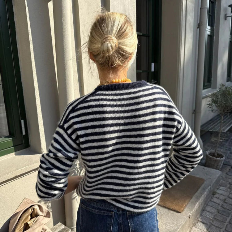Mit einem GARNA Strickpaket für die Olga Blouse von PetiteKnit bekommst Du GARNA Luxusgarn für einen wunderschönen Pulli mit klassischen Streifen.