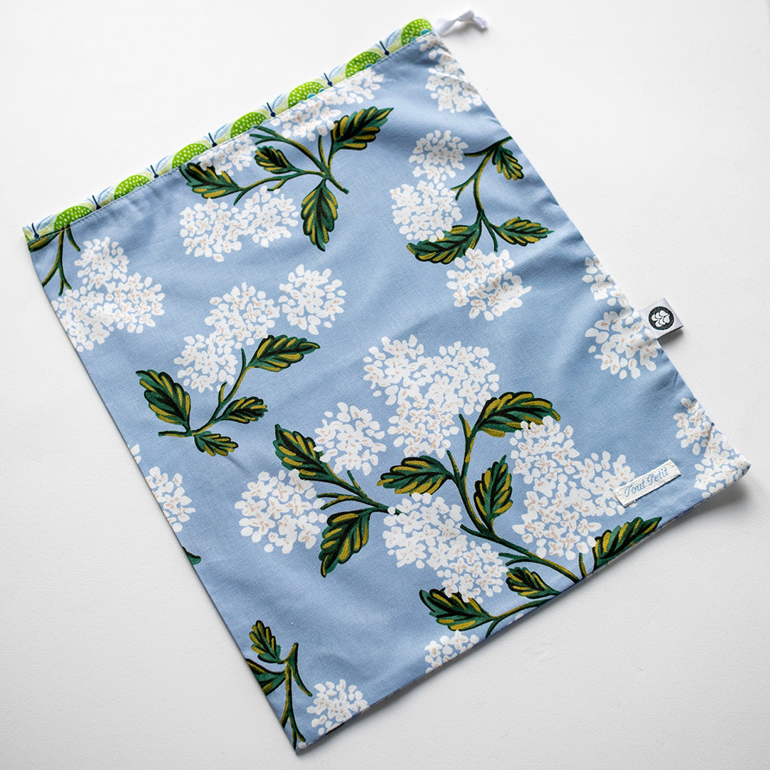 Dieser wunderschöne Garnbeutel wurde von Sophie vom Tout Petit Atelier auf Ærø genäht. Jede Tasche ist in ihrer Farb- und Musterkomposition absolut einzigartig und wird aus feinsten Liberty-Stoffen in Kombination mit wunderschönen Baumwollstoffen genäht.