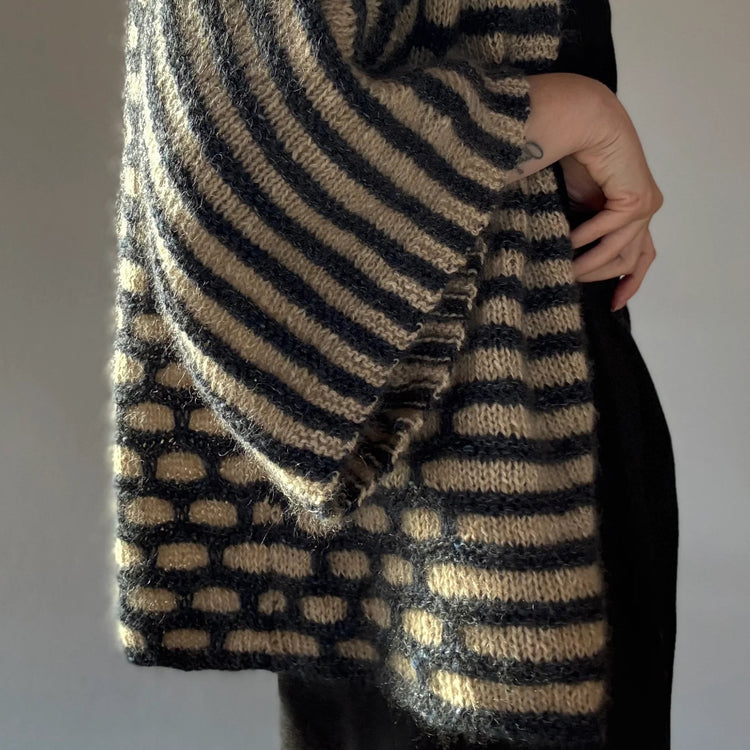 Mit einem GARNA Garnset für die Virginia Jakke von AEGYOKNIT bekommst Du GARNA Luxusgarn für eine Jacke mit einem Look, der an ein Cape erinnert. Die Jacke ist AEGYOKNITs Beitrag zur Isager Archives Collection 2025.